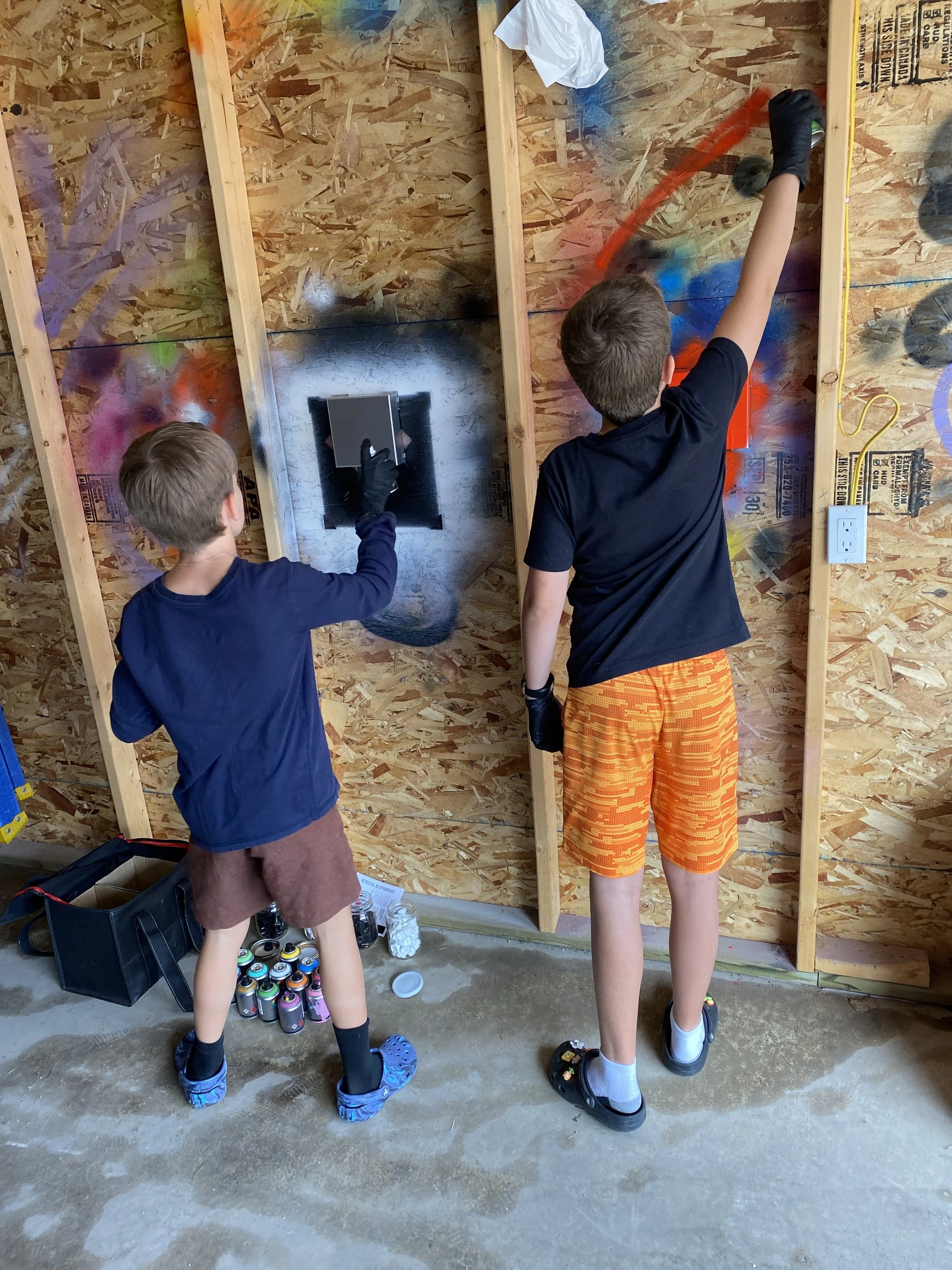 Back at home base, the boys tested spray painting for the first time.